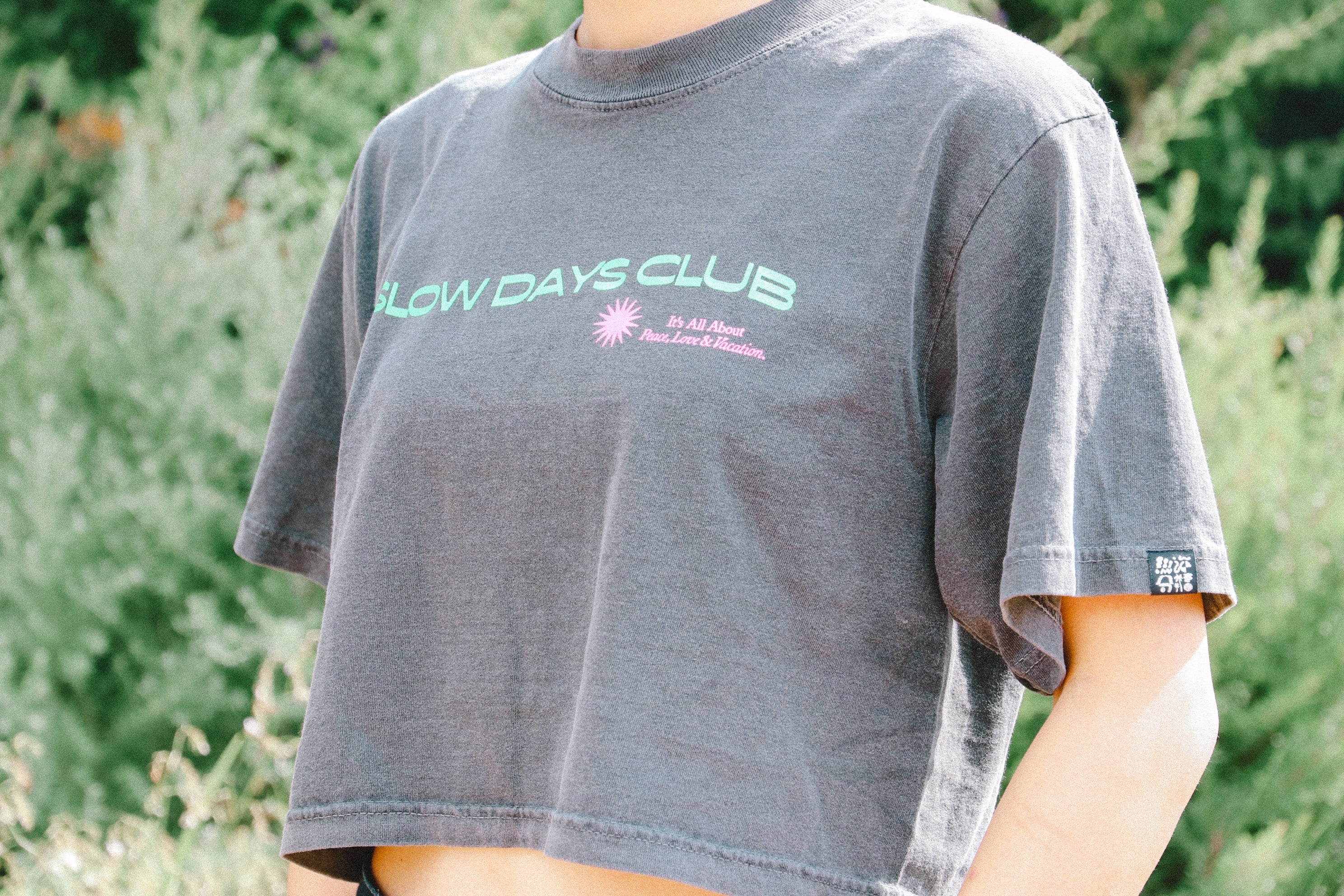 クロップドTシャツです。丈短め身幅広めの作りとなります。